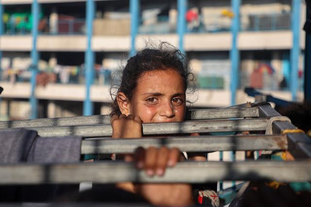 这是在加沙城一所学校里拍摄的流离失所的儿童(6月20日摄)。