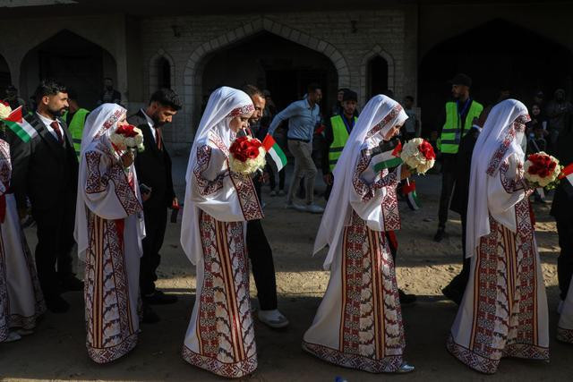 在加沙地带南部城市汗尤尼斯,巴勒斯坦新人参加集体婚礼(12月2日摄)。