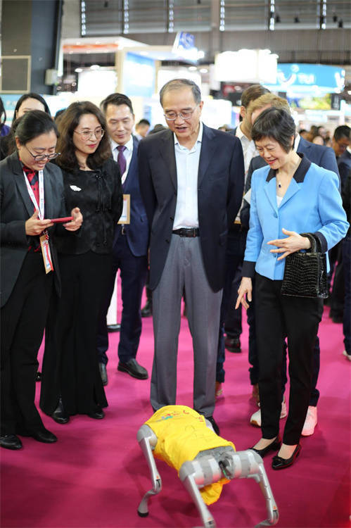 邓励大使和夫人张华体验国产智能“机器狗”导览服务。邵琦供图